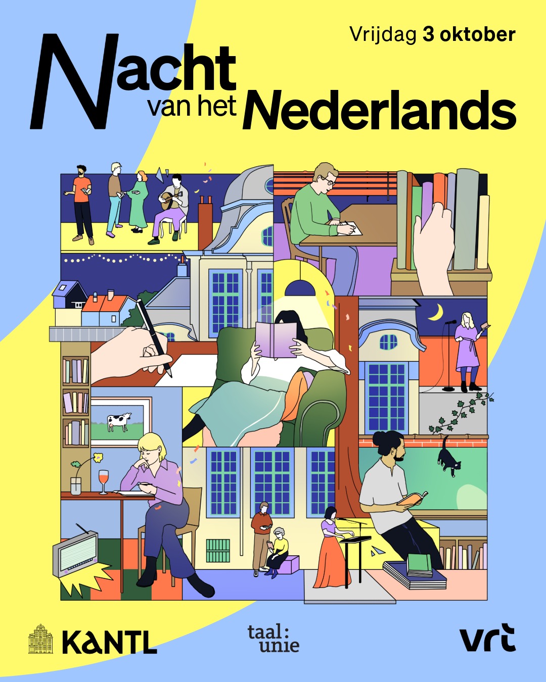 … duiken we, samen met gastvrouw Michèle Cuvelier, de nacht in voor een sprankelend taalfeest vol wetenschappelijke, creatieve en muzikale momenten tot in de vroege uurtjes