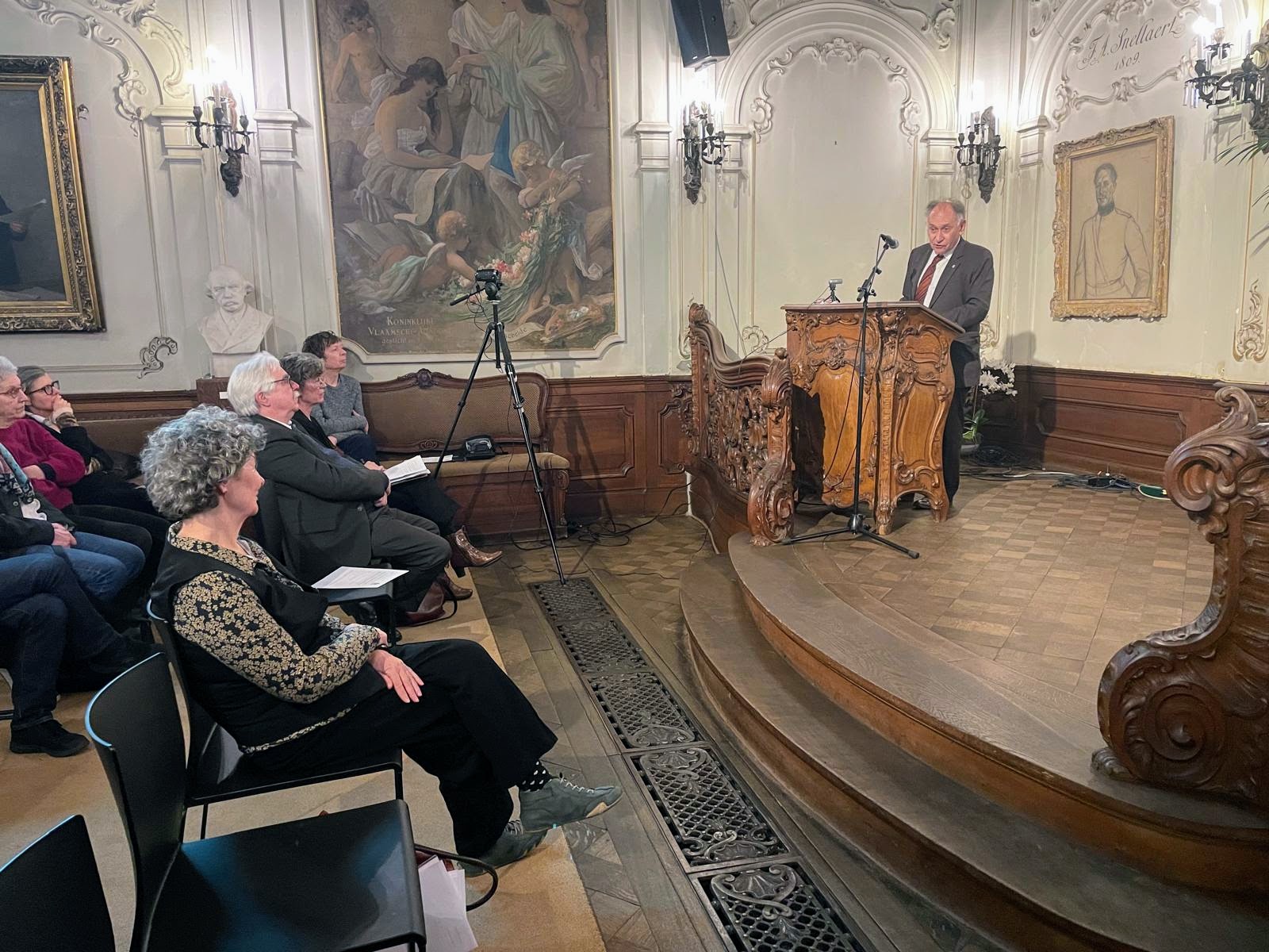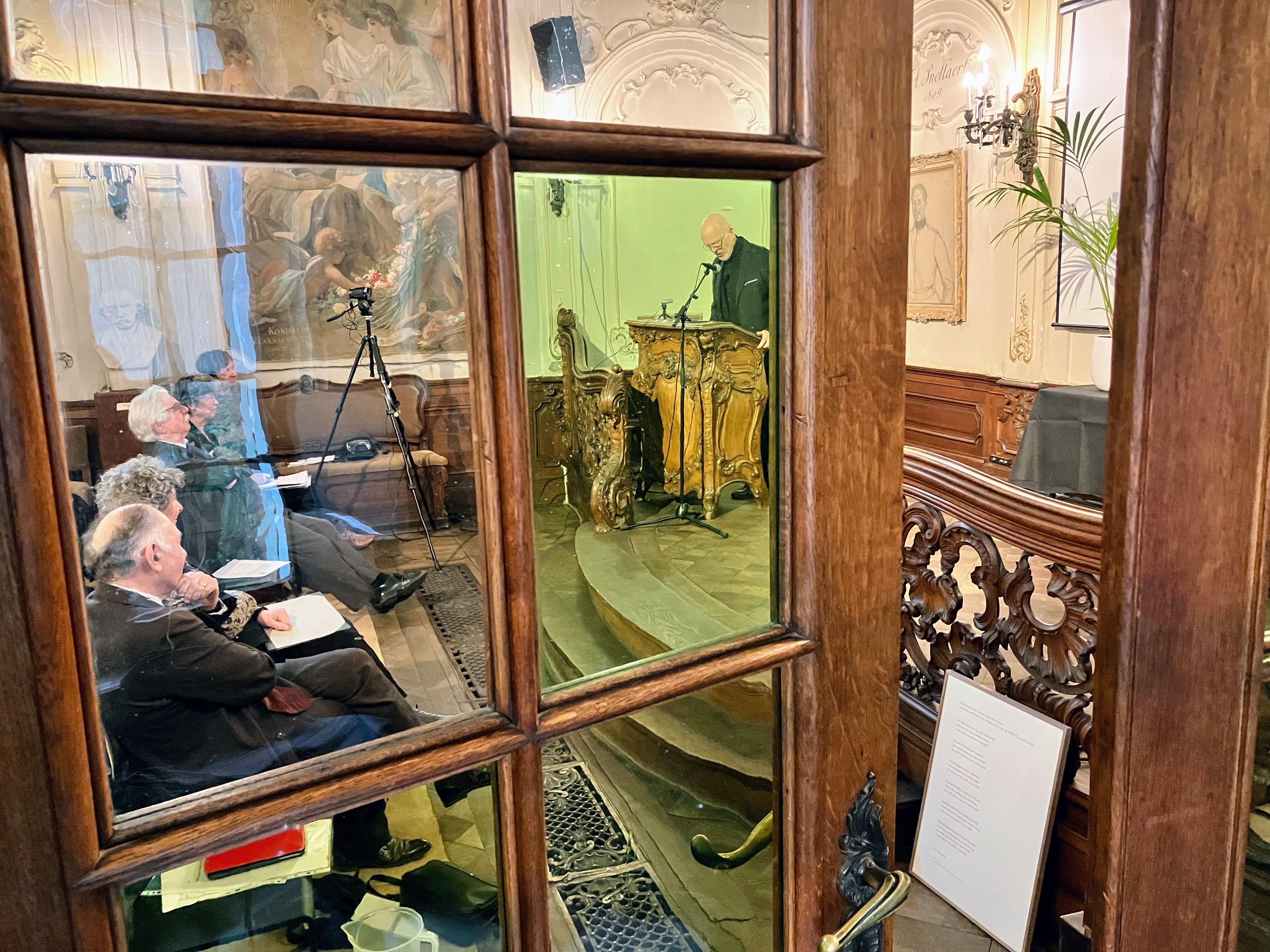 Haar afscheid werd op passende wijze gemarkeerd. Frank Willaert bracht een gloedvolle laudatio waarin hij Leens engagement en betekenis voor de KANTL belichtte, waarna Peter Theunynck haar hulde bracht met een speciaal voor de gelegenheid geschreven villanelle, fraai ingekaderd, en even persoonlijk als poëtisch. Woord en waardering gingen zo hand in hand.
